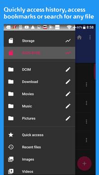 * Quickly access history, access bookmarks or search for any file