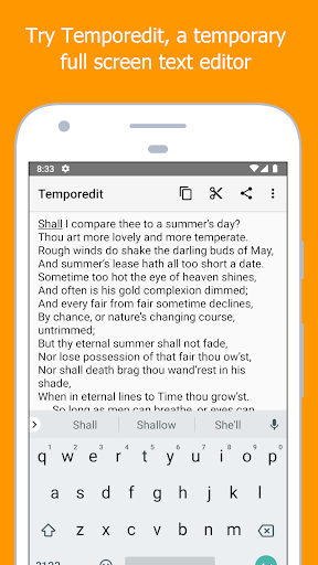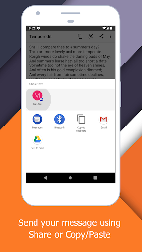 Ứng dụng nhắn tin, trò chuyện hoặc nhắn tin thường có trình soạn thảo văn bản tin nhắn nhỏ.Với Permentedit, bạn có thể dễ dàng soạn các tin nhắn dài hơn trong trình chỉnh sửa toàn màn hình ấm cúng, sau đó dễ dàng sử dụng các nút thanh công cụ Sao chép hoặc chia sẻ để gửi lại cho ứng dụng Giao tiếp yêu thích của bạn và gửi chúng đi.