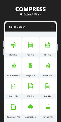 Trình đọc tệp ZIP - Trình quản lý tệp Unzip có thể zip / giải nén các tệp của bạn và công cụ zip dễ dàng. Bạn có thể nén các tập tin và làm cho chúng co lại chỉ với một cú nhấp chuột. Trích xuất tất cả các tệp ZIP và tệp RAR của bạn với ứng dụng này.