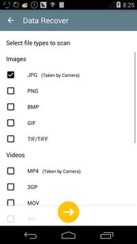 Deep scan heuristically scans for and recovers the following types of files: BMP, JPEG/JPG, PNG, MNG, JNG, GIF, MP4, AVI, MKV, MP3, OGG, OGM, WAV, FLAC, AMR, MP4A, PDF, SXD, SXI, SXC, SXW, ODT,ODG, ODS, ODP, DOCX, XLSX, PPTX, ZIP, JAR, APK, EPUB.