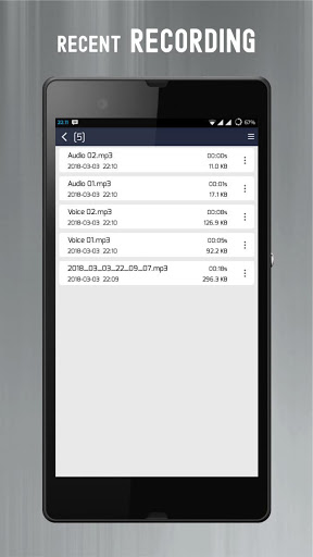 Giọng nói Ứng dụng ghi âm có thể ghi lại các cuộc họp, ghi chú cá nhân, bài phát biểu, bài giảng, bài hát. Không có giới hạn về thời gian. Máy ghi âm có thể ghi nhiều âm thanh nhất và bạn có thể ghi lại các cuộc họp kinh doanh, bài giảng, phỏng vấn. Điều này còn được gọi là: Trình ghi bài hát, Trình ghi âm nhạc.
