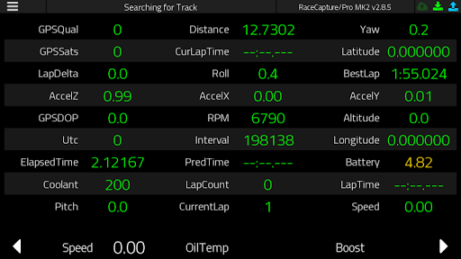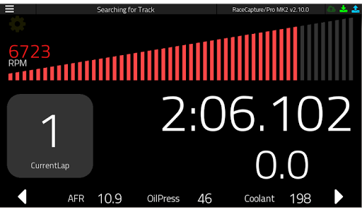 * Hiển thị thời gian vòng dự đoán bằng cách sử dụng GPS hiệu suất cao của Racecapture / Pro * Tùy chỉnh đồng hồ đo dữ liệu cảm biến, OBD-II và các luồng dữ liệu bus từ hệ thống RACECAppure