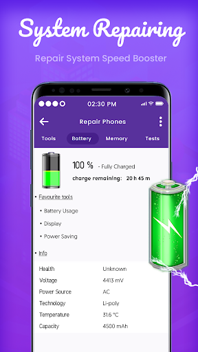 > This repair android system software helps you charge the battery faster and fixes the temperature problems.