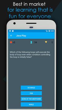 Java play Quiz app will help you to evaluate at what stage you are currently in java and helps you to face new questions!