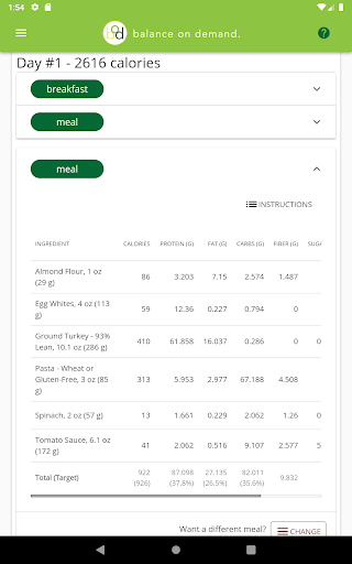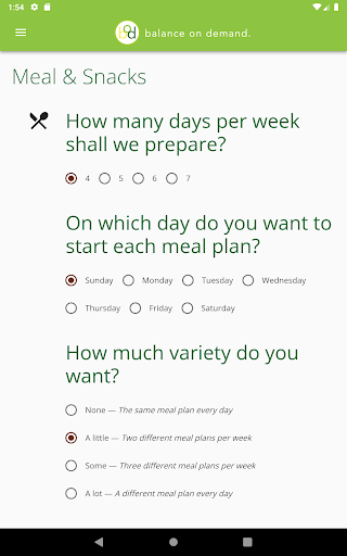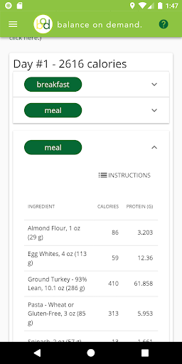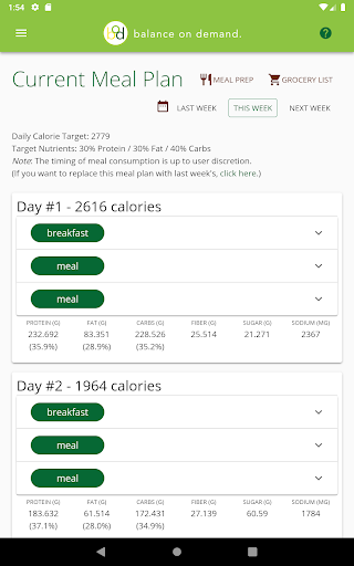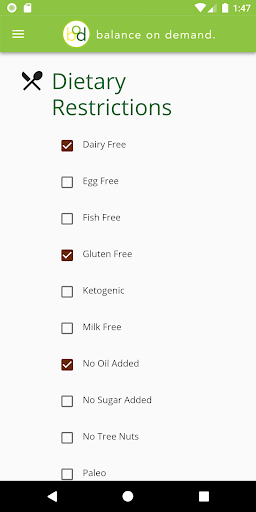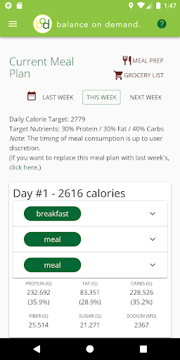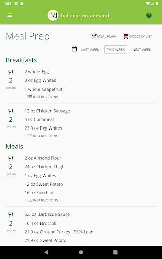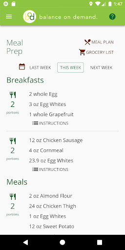Balance on Demand helps you develop nutritious meal plans to achieve your health goals, whether that means losing some weight or adding muscle mass. After providing some information around your body metrics, lifestyle, and dietary preferences, the app calculates your daily caloric intake and macronutrient percentages that will be used to generate each week's meal plan. Then each week you'll get a new set of meals that match your profile, with as much or as little variety as you want. You can also view a grocery list of all ingredients for the week to make your shopping trip a bit more efficient, plus view a checklist of meal preparation steps if you prefer to make everything at once.