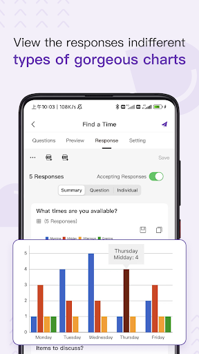 - Summary Mode: Visualize responses with beautiful graphs.