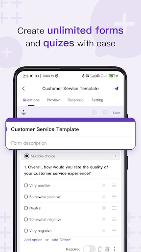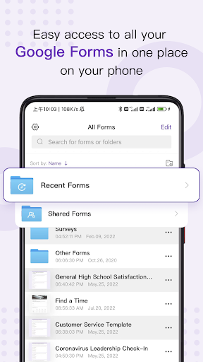 Create, edit, and manage all your Google Forms on your Android phone or tablet with the free Google Forms App. With Google Form App you can: