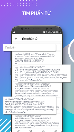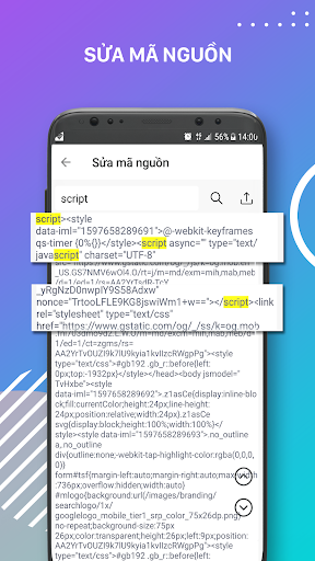 * Bước 3: Khi nhấn vào bất kì thành phần nào ứng dụng sẽ hiển thị mã nguồn của thành phần đó, các bạn có thể dùng trình soạn thảo để chỉnh sủa văn bản (text) rồi ấn nút lưu lại