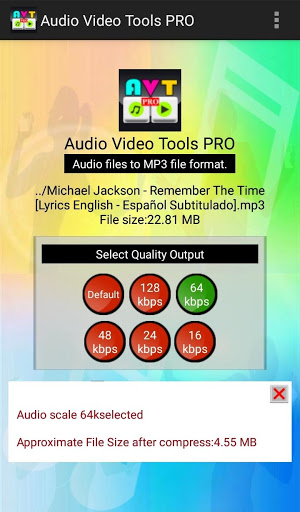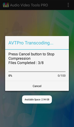 AVT Pro còn được gọi là ứng dụng âm thanh video công cụ Pro được chuẩn bị đặc biệt cho những người yêu âm nhạc và video. Với công cụ này, bạn có thể thực hiện nhiều thứ như nén tất cả các tệp âm thanh / video của mình trong một thư mục. Công cụ này sẽ nén tất cả các tệp từng tệp và lưu trong thư mục "AVT PRO" trong thiết bị của bạn.
