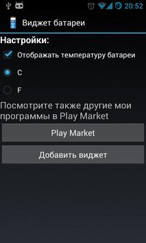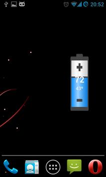 A simple battery widget. Clicking on the widget opens the battery usage statistics. Ability to display temperature.