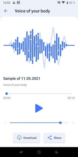 3. Bodysound phân tích sóng xung được quét và tạo một tệp âm thanh mà bạn có thể nghe hoặc chia sẻ