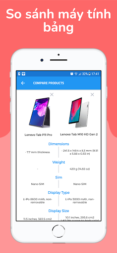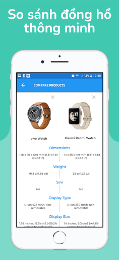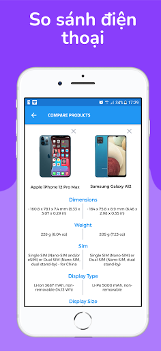 so sánh điện thoại - giá điện thoại di động: so sánh giá điện thoại, thông số kỹ thuật điện thoại trong cùng một ứng dụng.