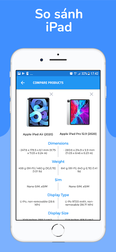 - Nhận tổng quan nhanh về tất cả các thông số kỹ thuật của điện thoại này so với điện thoại khác để giúp bạn hiểu sự khác biệt giữa chúng.