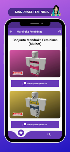 Com este aplicativo superdivertido, você terá acesso a uma infinidade de opções de vestimentas e acessórios descolados para personalizar sua skin. 🌟🔥 Basta copiar o ID da peça que mais combina com seu estilo, colar no jogo e pronto: sua skin estará linda e única! 😎✨