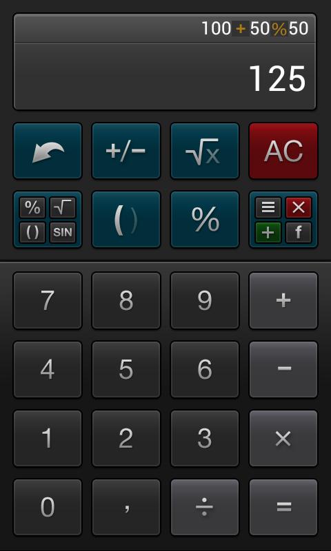 - Calculator with percentage (%) can easily cope with simple and complex calculations.
