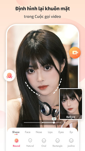 Chỉnh sửa khuôn mặt và hiệu ứng trong thời gian thực trong cuộc gọi video. Bạn có thể sử dụng tính năng tinh chỉnh làm đẹp khuôn mặt, định hình lại khuôn mặt, hiệu ứng & bộ lọc trong cuộc gọi video khuôn mặt (chẳng hạn như cuộc gọi video WhatsApp và cuộc gọi video ứng dụng GB WhatsApp). Sử dụng trình chỉnh sửa ứng dụng khuôn mặt tuyệt vời này để tạo ra một lớp trang điểm tuyệt đẹp trên các phương tiện truyền thông xã hội như Facebook, Instagram, TikTok, v.v.
