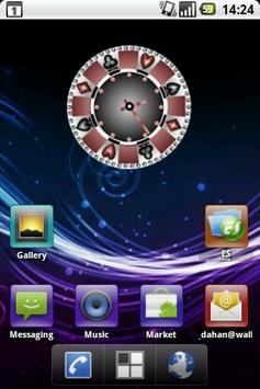 A beautiful analog clock widget for your android device. Decorated with spades, hearts, diamonds and clubs. Tapping the widget will open the alarm clock application.