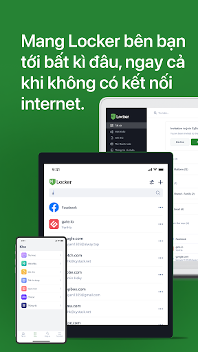 - Với Chế độ Ngoại tuyến (Offline Mode), bạn có thể sử dụng Locker mọi lúc, mọi nơi, ngay cả khi điện thoại của bạn không được kết nối với nternet **.
