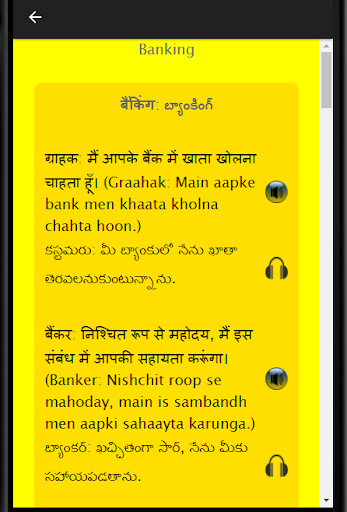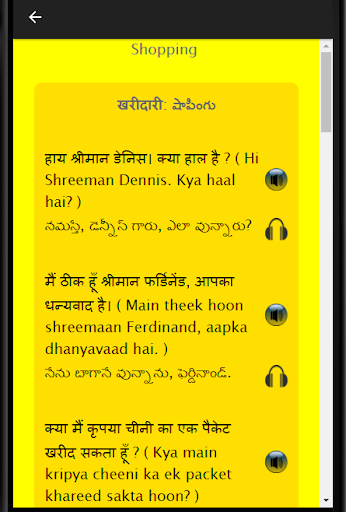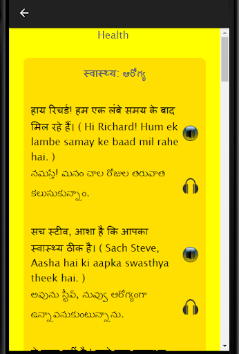 This language learning application can also be used by those Telugu speaking participants who are preparing for BPO, Call Center, Hindi Discussions and Debates as well as Hindi job interview. If you want to learn Hindi grammar, it is advised that you initially go through this application get yourself ready for your next assignment. If I want to learn Hindi, I should be approaching this application for the same and go through all the chapters. This app can help you learn Hindi fast using audio. It is easier to learn the language using Hindi conversation rather than through an Hindi Dictionary. Learning Spoken Hindi had never been easier. Exercises, vocabulary and business Hindi make this application a very special one.