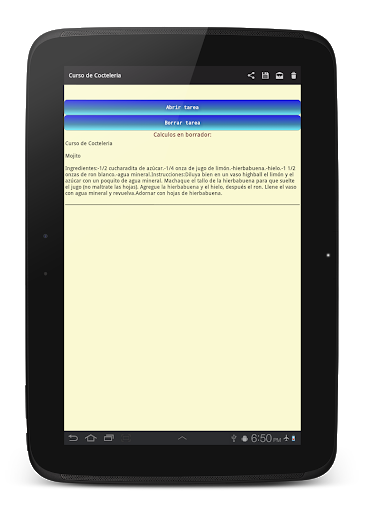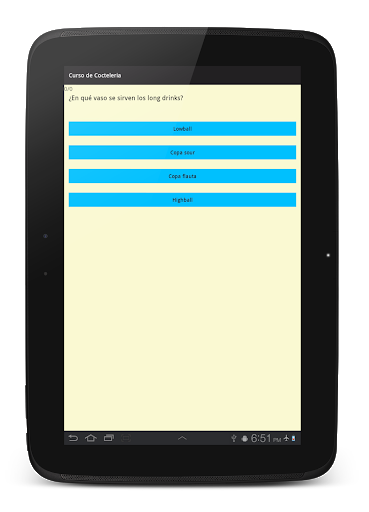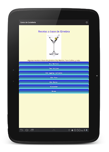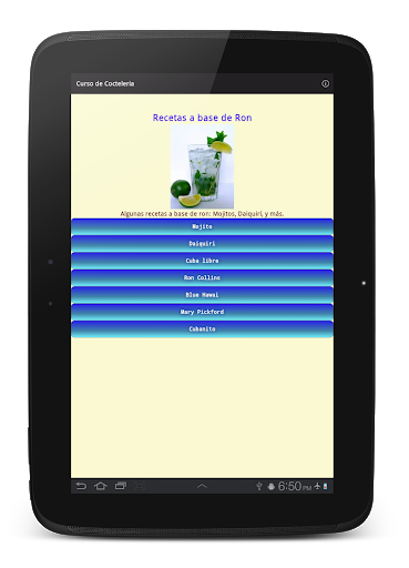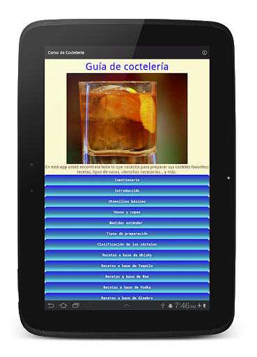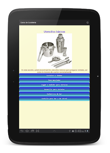 In this app you will find everything you need to prepare your favorite cocktail : recipes, types of vessels, utensils ... and more.