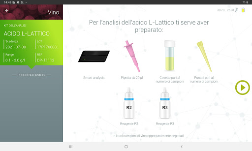 Ứng dụng này cho phép bạn thí điểm Phòng thí nghiệm di động phân tích thông minh để kiểm soát thực phẩm chất lượng, một công cụ gửi đến các công ty trung tâm nhỏ liên quan đến sản xuất và thương mại các sản phẩm thực phẩm nông nghiệp, trong đó phân tích hóa chất để kiểm soát chất lượng trực tiếp trong cơ quan.Có thể theo dõi các thông số chất lượng của sản phẩm trong các giai đoạn sản xuất khác nhau, từ nguyên liệu thô đến sản phẩm hoàn chỉnh và tạo báo cáo về kết quả trong thời gian thực của các thông số quan tâm chính.