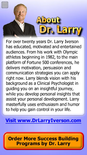 Tiến sĩ Larry Iverson là một nhà tâm lý học, huấn luyện viên, tác giả & huấn luyện viên điều hành. Trong sự nghiệp, ông đã được đào tạo và huấn luyện hơn 1.000.000 người. Trong chương trình này, bạn sẽ học các chiến lược thành công để hỗ trợ bạn xây dựng cuộc sống mà bạn muốn.
