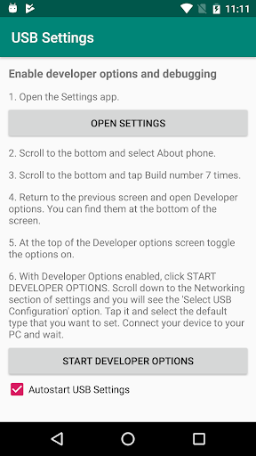 Tùy thuộc vào phiên bản của Android, ứng dụng có thể yêu cầu chạy các tùy chọn nhà phát triển.Điều này là cần thiết từ phiên bản 6.0.
