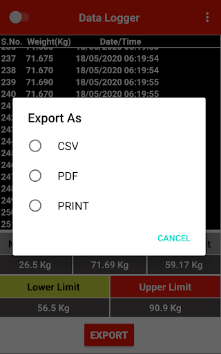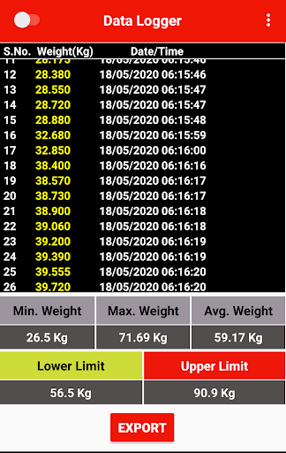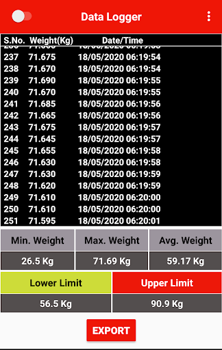 It is a Bluetooth enabled app used to monitor and log the Weight data wirelessly from a weight indicator device. Users can set the time interval between data transfer and also set the upper and the lower limit of the data received.