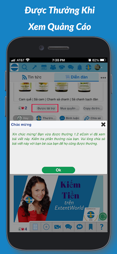 Bạn sẽ được trả tiền nếu xem quảng cáo của người dùng trên ExtentWorld. Bạn cũng có thể đặt giá xem cho nội dung bạn đăng trên ExtentWorld để những người khác phải trả tiền cho bạn nếu họ muốn xem nội dung của bạn.
