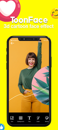 Trình chỉnh sửa hình ảnh ToonApp tự động loại bỏ nền, để bạn có thể thêm một nền sáng bóng mới! Làm cho hình ảnh thành phim hoạt hình phim hoạt hình trước, sau đó thêm nền phim hoạt hình tuyệt vời cho hình ảnh hồ sơ tuyệt vời.