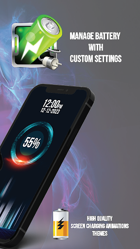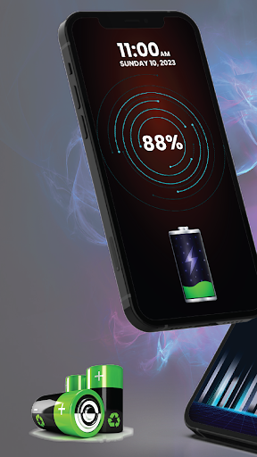Mobile charging themes allow users to choose from a variety of charging shows on the lock screen. Battery charging animations have realistic graphics. As well as the choice of colored backgrounds and texts.