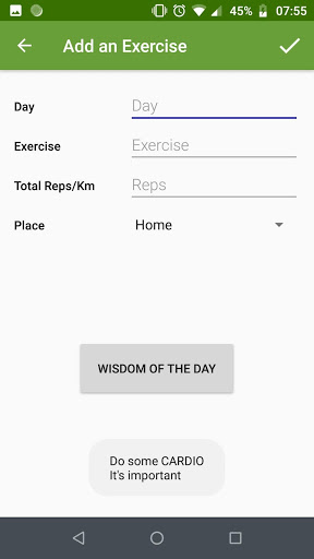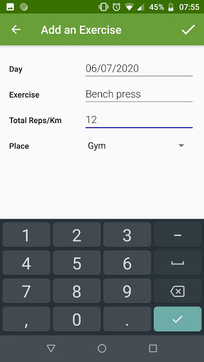Theo dõi tập luyện của bạn. Lưu bài tập, ngày, số lượng reps (hoặc khoảng cách) và vị trí. Các tính năng như máy ảnh và một nút để hiển thị các tin nhắn sẽ giúp bạn có động lực là tất cả một phần của việc nàyỨng dụng tuyệt vời!