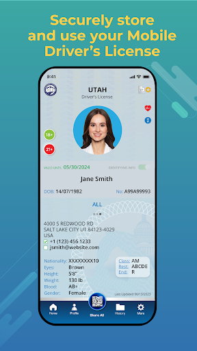 Nhận ID di động cung cấp cho bạn, người dùng, kiểm soát ID của bạn và thông tin bạn chia sẻ.Điều này cho phép kiểm tra nhận dạng và xác nhận tuổi và kiểm tra nhận dạng nhanh chóng và an toàn trên mọi loại hình kinh doanh.Và bạn không bao giờ bàn giao điện thoại của mình.Mua dựa trên tuổi?Chỉ chia sẻ tuổi của bạn, không phải tất cả các thông tin khác của bạn.Bạn chọn ai để chia sẻ thông tin cá nhân của bạn và chia sẻ bao nhiêu dựa trên tình huống.Các hình thức của thông tin xác thực ID di động trên thiết bị di động của người dùng.Nó đại diện cho một sự thay thế thuận tiện, an toàn và ngay lập tức cho các tài liệu nhận dạng vật lý truyền thống.Nhận ID di động sử dụng các thuật toán mã hóa dữ liệu và các biện pháp bảo mật truyền thông để chống gian lận và giảm hành vi trộm cắp danh tính trong khi cải thiện quyền riêng tư của công dân.