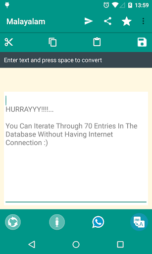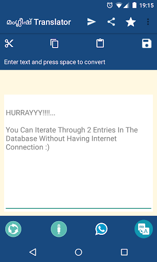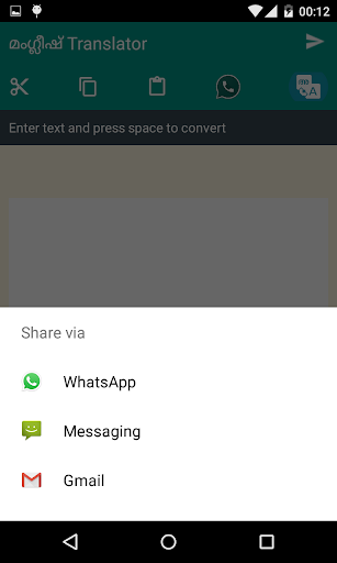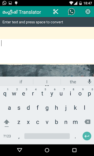 Manglish translator will help you to translate your Manglish or english words to Malayalam. We have implemented chat head like service along with the Translator application, so that you can easily switch/toggle between applications with a single click.
