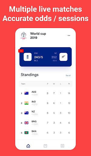 Nó có sáu tab đó là: đồ đạc, nhà, tin tức, xem trực tiếp và bối cảnh. Những tab đó cung cấp cho bạn nhận được kiến thức, số liệu thống kê, xếp hạng, bảng điểm, tin tức, v.v. TAB Bạn sẽ có thể biết các giải đấu quốc tế, trong nước, hàng đầu sắp tới, với bộ đếm thời gian đếm ngược. Nó cũng đã hoàn thành tab mà người dùng có thể được thông báo về trò chơi nào gần đây, kết quả của các trận đấu, v.v. Trong Tab Live có thể nhận được tất cả các bản cập nhật với số điểm nhanh nhất của các trận đấu cricket diễn ra trực tiếp trên khắp thế giới. Khi sắp tới, như đã giải thích trước đây, nó có lịch trình các trận đấu sắp tới. Khi hoàn thành, nếu không may ai đó bỏ lỡ một trận đấu mà anh ấy hoặc cô ấy có thể nhận được tất cả thông tin từ đây. >
