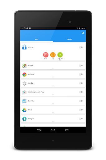 A-lock cho phép bạn thiết lập hai loại mở khóa, xác định khóa chính (Pattern hoặc Code), sau khi cài đặt ít nhất một trong hai người sẽ có thể để ngăn chặn các ứng dụng mà bạn muốn giữ an toàn.