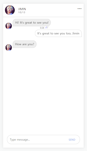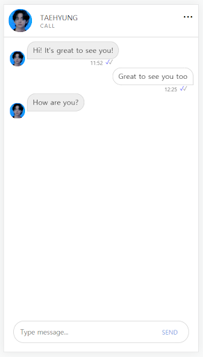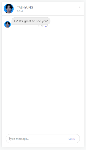 Đó là một ứng dụng trò chuyện giả Takehyung đơn giản. Bạn có thể thực hiện cuộc gọi video cũng như một cuộc nói chuyện.