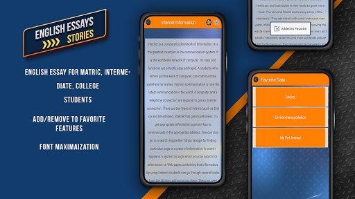 English Essays is a very good application for learning and writing the English because English is an international language so you do not need the internet connection every time to read the English Essays and Stories.