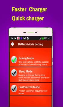 When you connect your charger, Quick Battery Charger will detect and limit the power consumption of mobile phone / tablet. Then you do not draw a lot of battery power during charging time and therefore can fill up very quickly. According to our tests, this will reduce the charging time by 20% -40% (depending on the device)