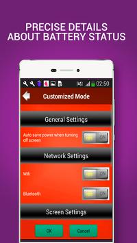 • Customize power saving options according to preference: Wifi, Bluetooth, 3G / 4G Mobile Data, Location Services, GPS, Brightness.