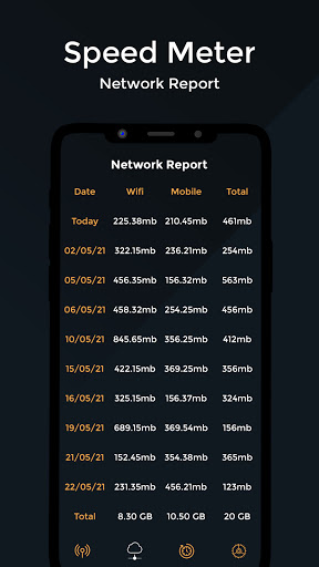 ► Giám sát tải lên và tốc độ tải xuống một cách tách biệt hoặc kết hợp trên thanh trạng thái của bạn. Theo dõi hồ sơ sử dụng.