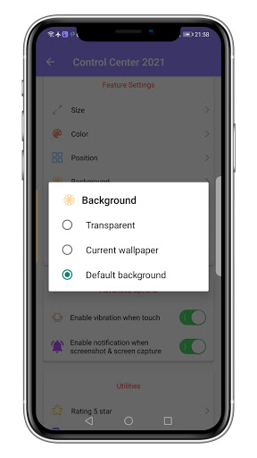 Chọn nền được hiển thị trong Trung tâm điều khiển.