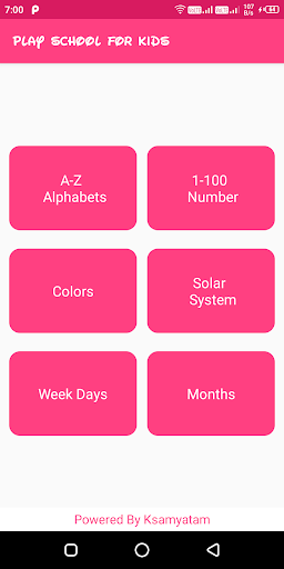 Play School For Kids to learn Alphabets,Numbers,Color,Solar System,Week Days and Months.