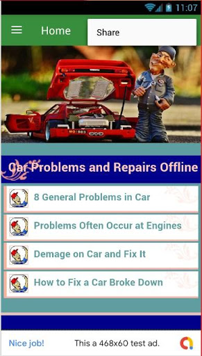 Car problems and repairs offline is an android based application that contains a collection of problems in the car and how to fix them.