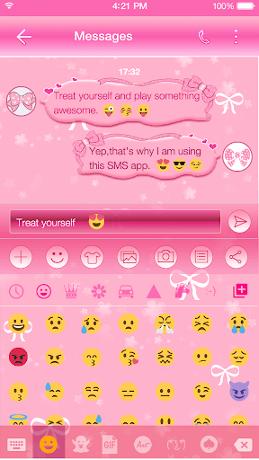 Girly Pink Keyboard Skin for a free popular Emoji Art,Gif,Symbol,Stickers and Smiley Keyboard.