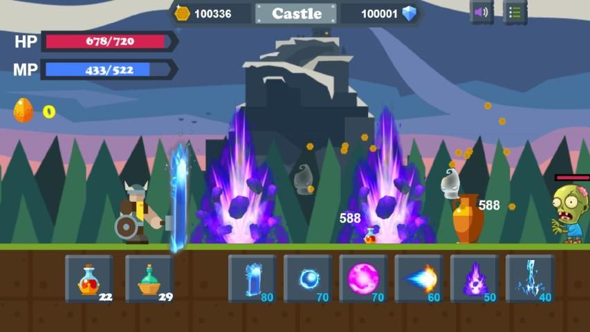 Viking Town had been invaded by three powerful ancient demons and their slaves. The king was old, and his power was not enough, so he call all the heroes together and you are one of them. Tomorrow you will be on the road to fight for your town.Do not ruin your honor, hero! Fight!