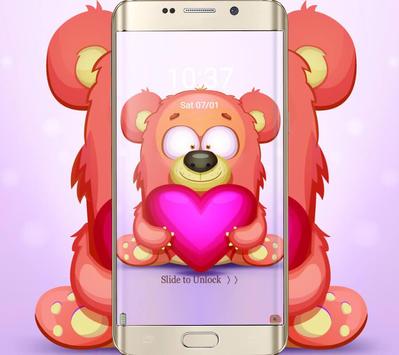 Pink cute bear theme lock screen with colorful hd live wallpaper.