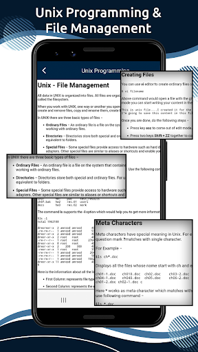 Đây là ứng dụng tìm hiểu unix - lập trình và scripting cho người dùng mới bắt đầu và cấp độ người dùng nơi người dùng có thể tìm hiểu hệ điều hành này rất dễ dàng. Điều này có chứa hướng dẫn UNIX hoàn toàn miễn phí, bắt buộc phải học với ngôn ngữ rất dễ dàng.