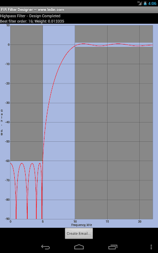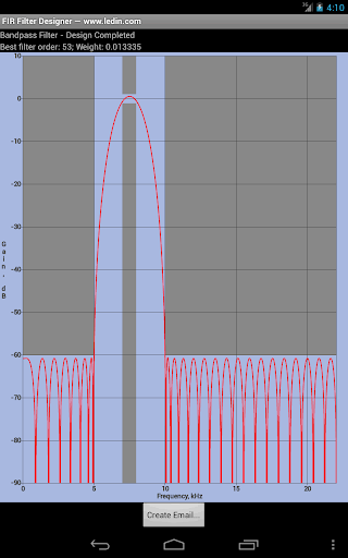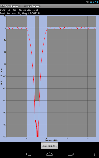 Đầu ra của quy trình thiết kế là danh sách các hệ số bộ lọc chính xác kép (tùy chọn đầu ra văn bản) hoặc triển khai bộ lọc trong c /C , C #, mã nguồn Octave C #, Java hoặc MATLAB / GNU.Đầu ra này được định dạng thành một email bạn có thể gửi cho bất kỳ người nhận nào.