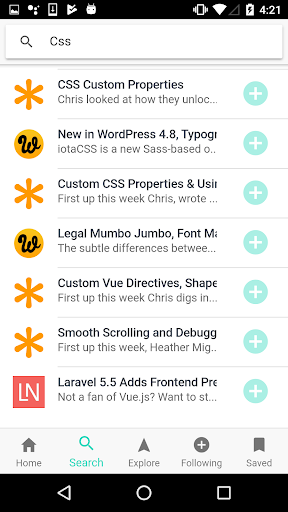 Simply follow a publisher's channel and their content will appear in your feed. You can search, save, hide and explore by category. • no spam emails • no ads in feed